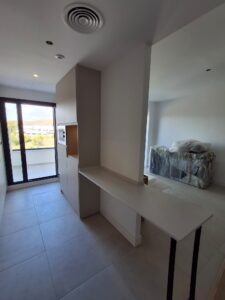 Cada detalle ha sido cuidadosamente pensado para aprovechar al máximo el espacio, integrando electrodomésticos de manera eficiente y discreta.