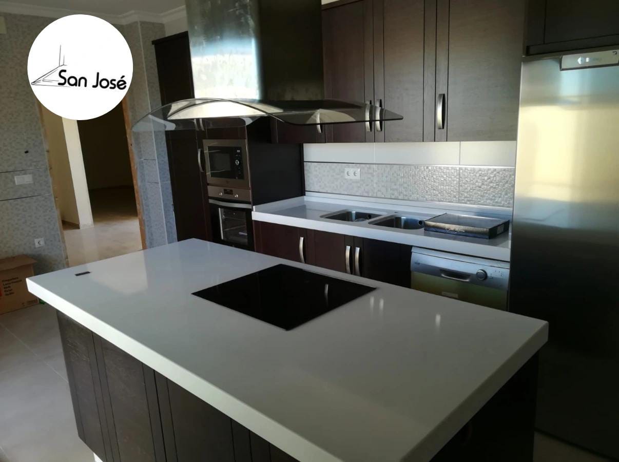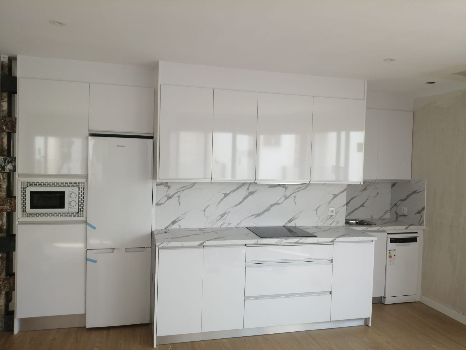 COCINA BLANCO BRILLO Y ENCIMERA EFECTO MARMOL