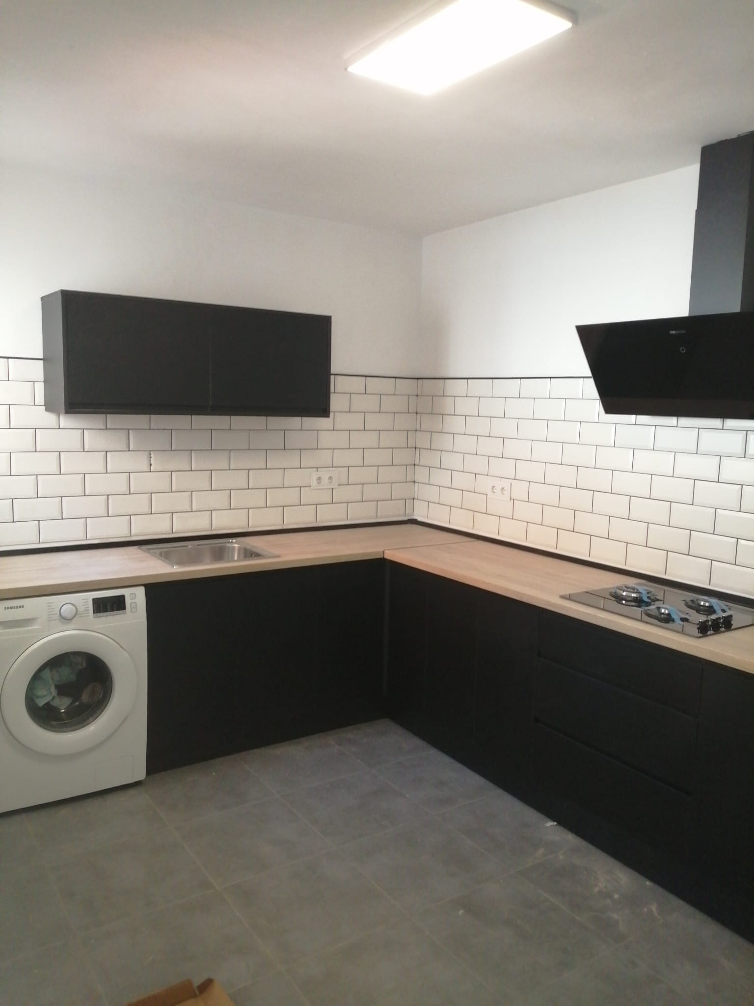 COCINA NEGRO MATE CON ENCIMERA EFECTO MADERA