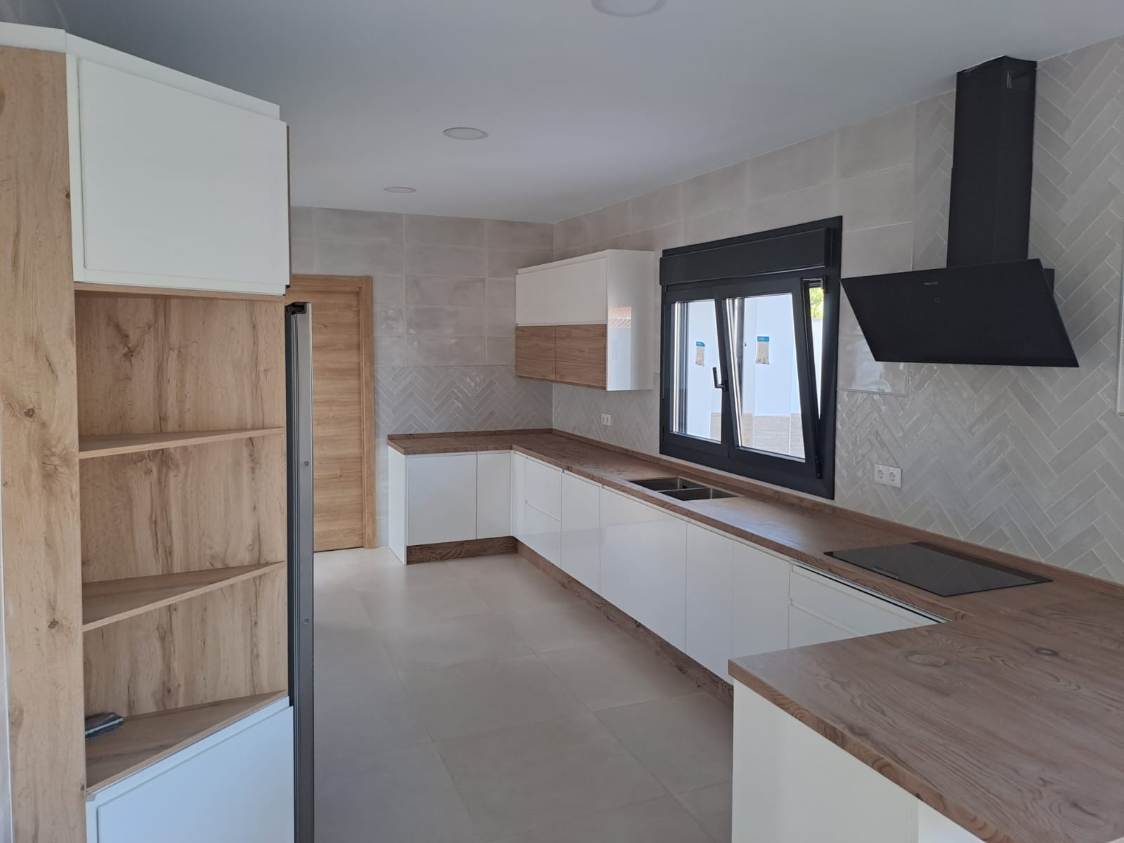 COCINA BLANCA CON ENCIMERA DE MADERA