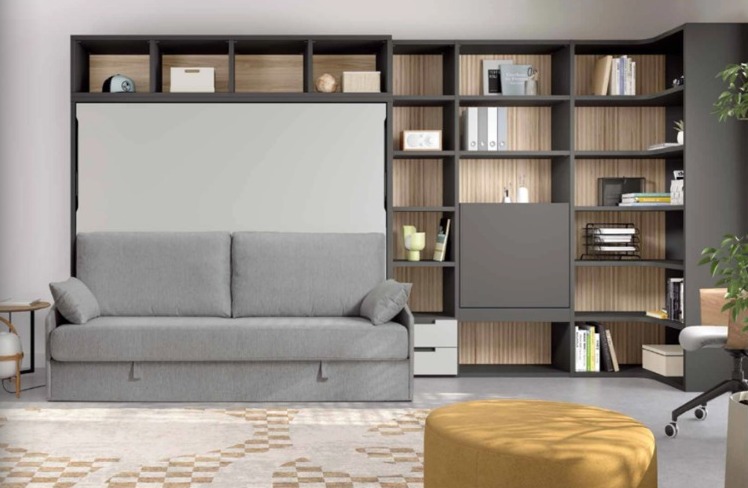 CAMA ABATIBLE CON SOFÁ Y LIBRERIA INTEGRADA
