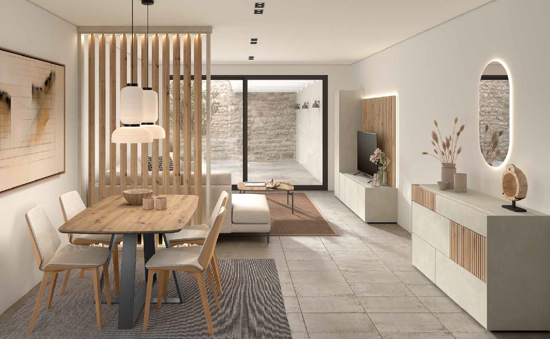 Cada detalle está pensado para lograr armonía: muebles de tonos naturales, luz indirecta, texturas suaves y una distribución que favorece la comodidad y la elegancia.Desde comedores y salas de estar hasta recibidores sofisticados, nuestras propuestas destacan por su estilo minimalista, el uso de materiales nobles y la integración de elementos decorativos que aportan serenidad y carácter.